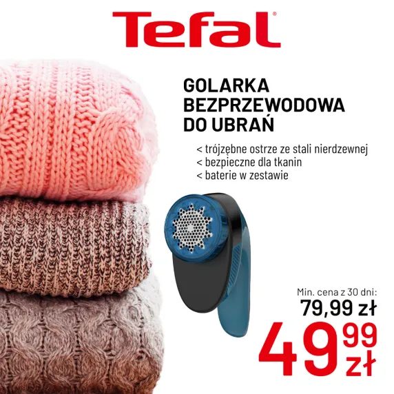 Golarka bezprzewodowa Tefal została wyposażona w trójzębne ostrze ze stali nierdzewnej, które skutecznie usuwa zmechacenia i jest bezpieczne dla tkanin. W zestawie znajdują się baterie, więc urządzenie jest gotowe do użycia od razu.