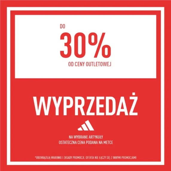 Do -30% od ceny outletowej na wybrane artykuły. Ostateczna cena podana na metce.