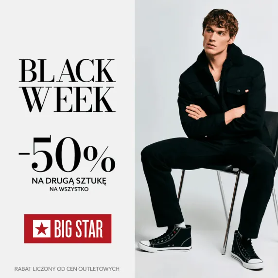 BLACK WEEK -50% NA DRUGĄ SZTUKĘ w BIG STAR! Otrzymaj 50% rabatu na sztukę.