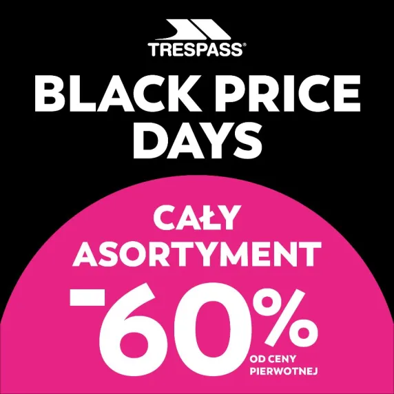 Promocja -60% od ceny regularnej na wszystkie produkt TRESPASS.