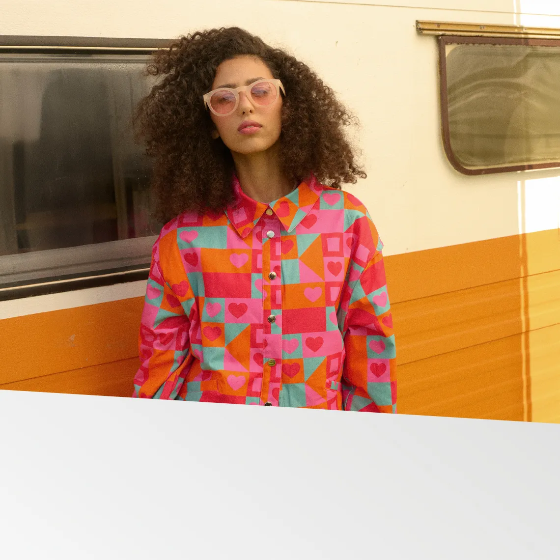 kobieta w okularach przeciwsłonecznych i kolorowej koszuli