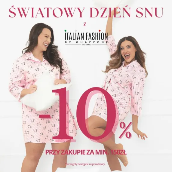 -10% przy zakupie za min. 150 zł. Promocja dotyczy wszystkich piżam i koszul nocnych damskich, męskich i dziecięcych.