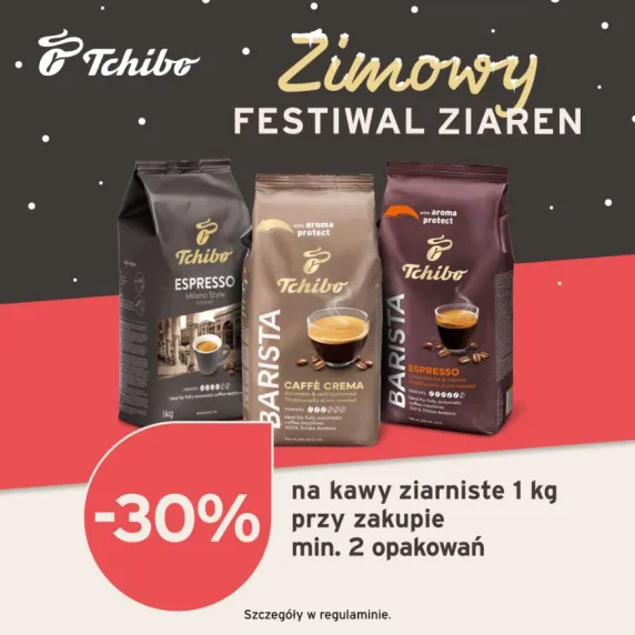Przygotuj się na prawdziwą kawową ucztę, teraz 30% rabatu na kawy ziarniste 1 kg przy zakupie min. 2 opakowań. Bez względu na to, czy wolisz delikatną nutę czekolady, czy też aromaty prażonych orzechów lub owoców tropikalnych w Tchibo znajdziesz swój smak! Szczegóły w regulaminie u doradcy.