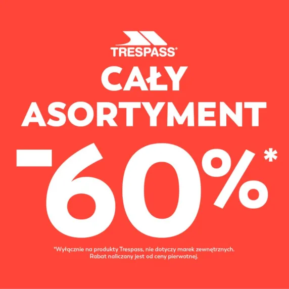 *Wyłącznie na produkty Trespass nie dotyczny marek zewnętrznych, rabat naliczany od ceny pierwotnej.