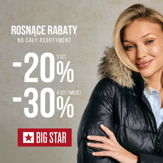 ROSNĄCE RABATY w BIG STAR! Przy zakupie 3 szt. rabat 20%, 4 szt. i więcej rabat 30%.